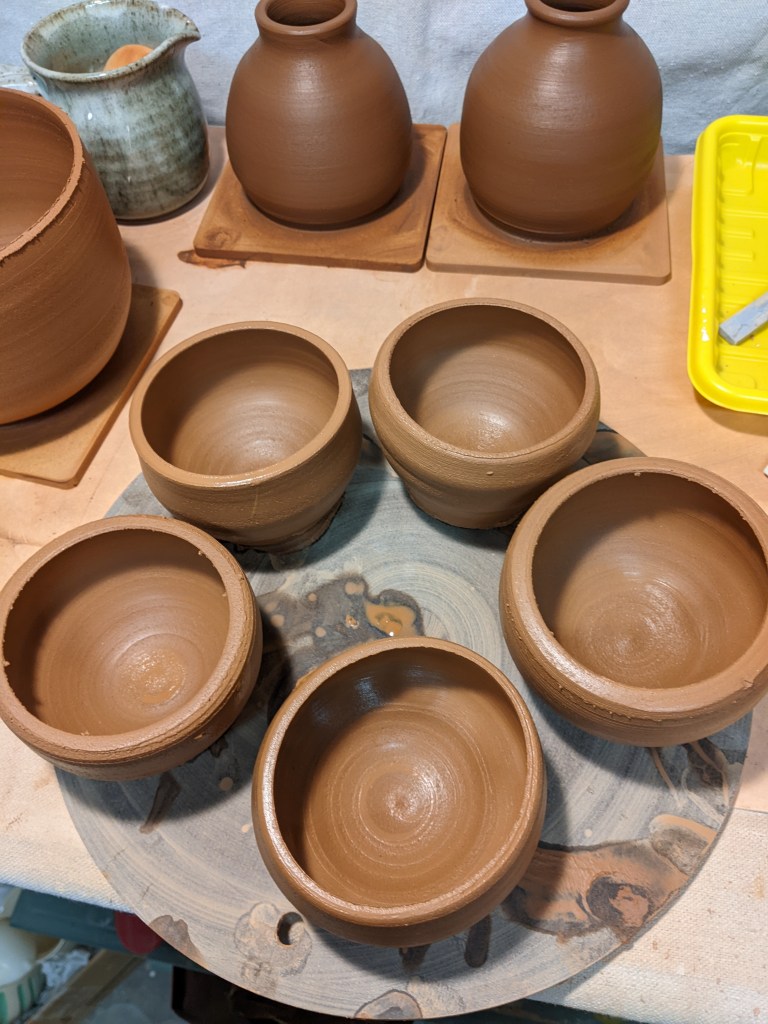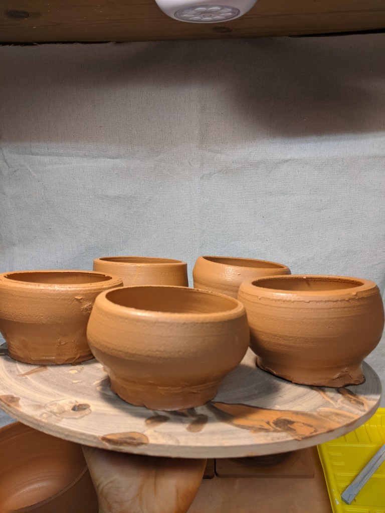 I’m going to consider these pieces as practice, which means they will be going into the clay recycling bucket. This is only my third time throwing off the hump so I’m sure the next time will be a bit better, and I’ll hopefully be able to keep a few pieces.