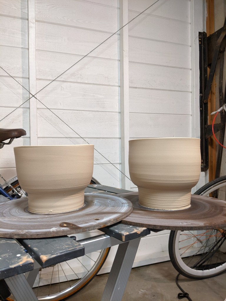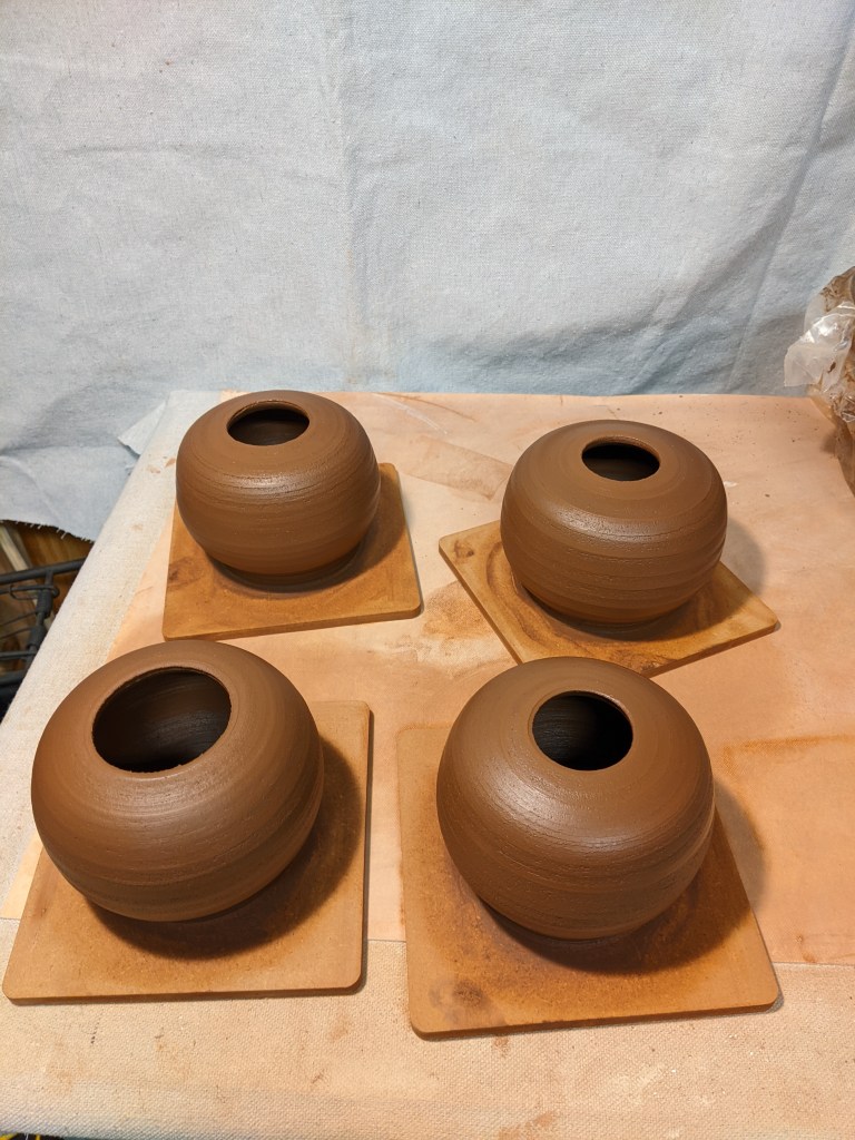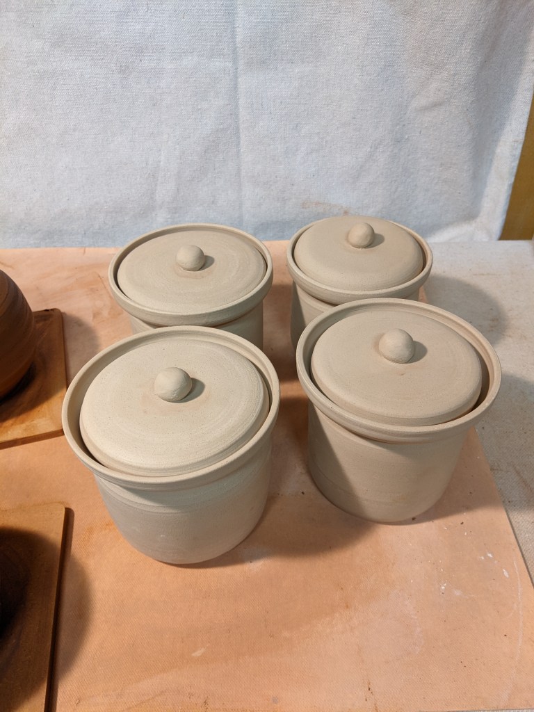 I’m suuuuper excited about these jars. I definitely need to be careful when I get to glazing to make sure the lid and jar don’t get stuck to each other. All my lidded jars have been getting stuck so far. These were definitely tough to make consistent in size even when I was measuring the height and width. You can tell from the photo that the lids look a little different.